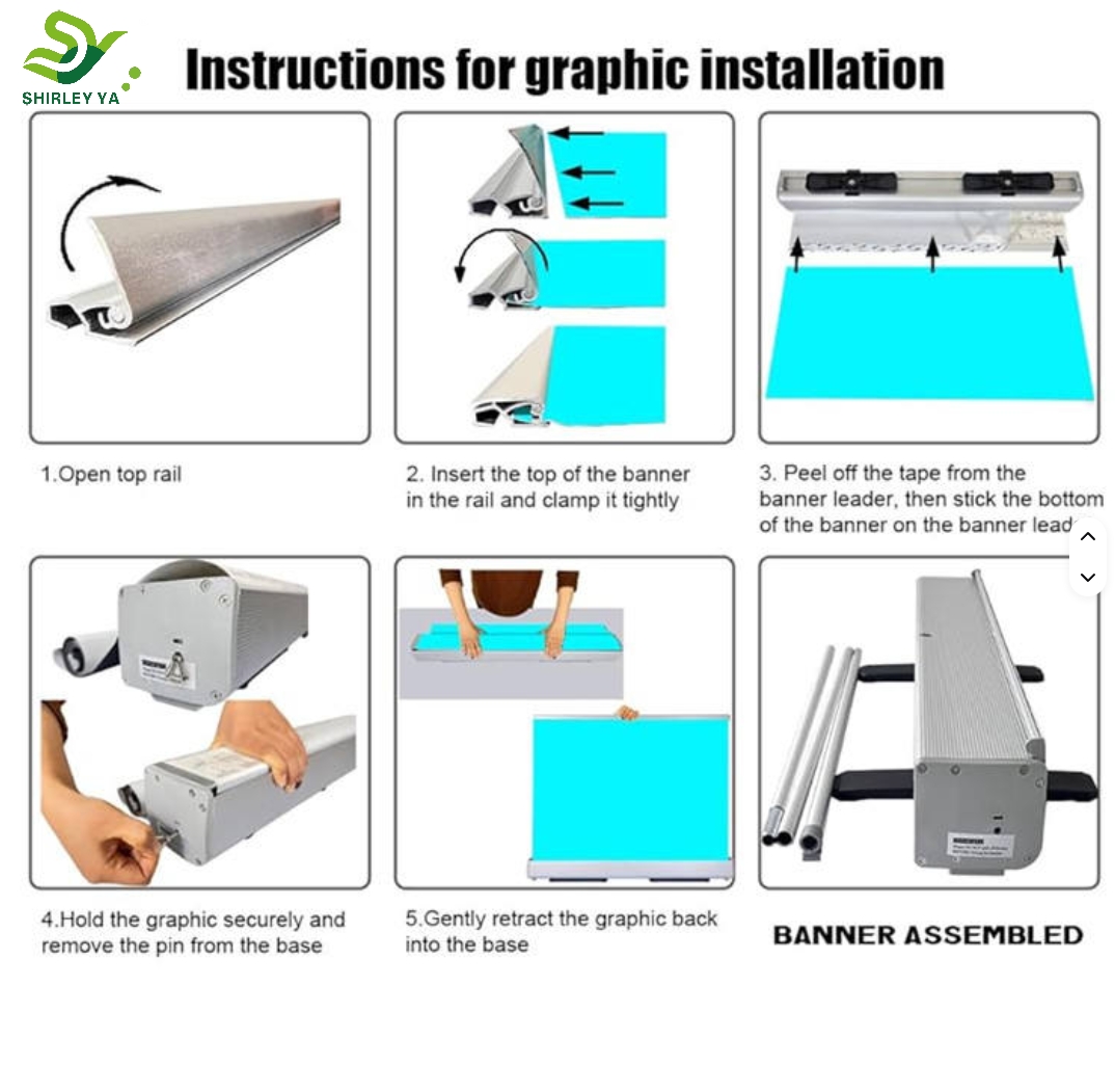 At SHIRLEY YA, we’re more than just a manufacturer—we’re a partner in your display success. Our roll-up stand bases are just one part of our comprehensive display solutions, which also include roll-up banner stands, telescopic poles, graphic cassettes, and more.