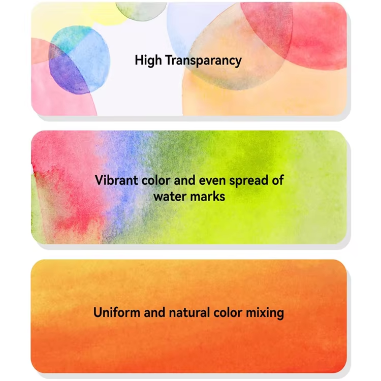 Este conjunto é perfeito para artistas, estudantes e entusiastas que procuram aquarelas confiáveis. A faixa de cores versáteis é adequada para uma variedade de técnicas, de lavagens leves a golpes ousados e ousados. Se você está pintando em casa, no estúdio ou ao ar livre, o12 cores de água de qualidadeForneça tudo o que você precisa para dar vida às suas idéias criativas.